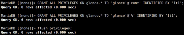 glance데이터베이스에 대한 적절한 액세스 권한을 부여하고, GLANCE_DBPASS적절한 비밀번호로 교체한다.